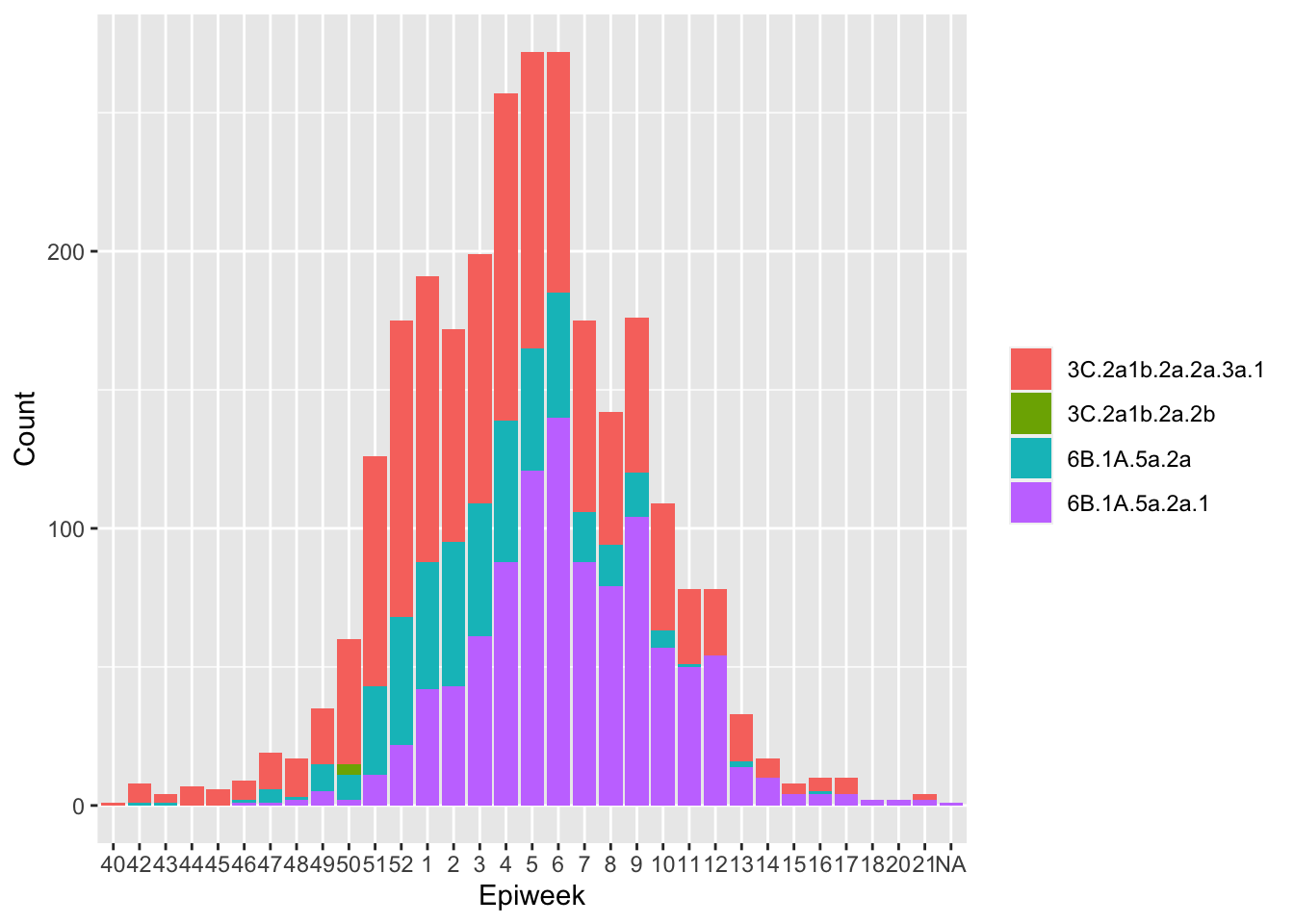Since 2020, the Lauring laboratory has been performing genomic surveillance of respiratory viruses nationally and across the State of Michigan. In 2024, we brought these activities under the umbrella of the Michigan Infectious Disease Genomics Center, one of three NIAID-supported Genomic Centers of Infectious Diseases. We currently sample influenza viruses and SARS-CoV-2 specimens provided by testing laboratories at Michigan Medicine and Henry Ford Health System as well as through the other studies on this page. Our surveillance of influenza viruses is supported by the NIAID Centers for Respiratory Virus Surveillance and Response (CEIRR), and our surveillance of SARS-CoV-2 is supported by a contract from the CDC. Completed genomes are available through NCBI Genbank under the following bioprojects: PRJNA1015662 (SARS-CoV-2), PRJNA1019712 (Influenza A virus), PRJNA1023536 (Influenza B virus), PRJNA1079770 (Respiratory Syncytial Virus).